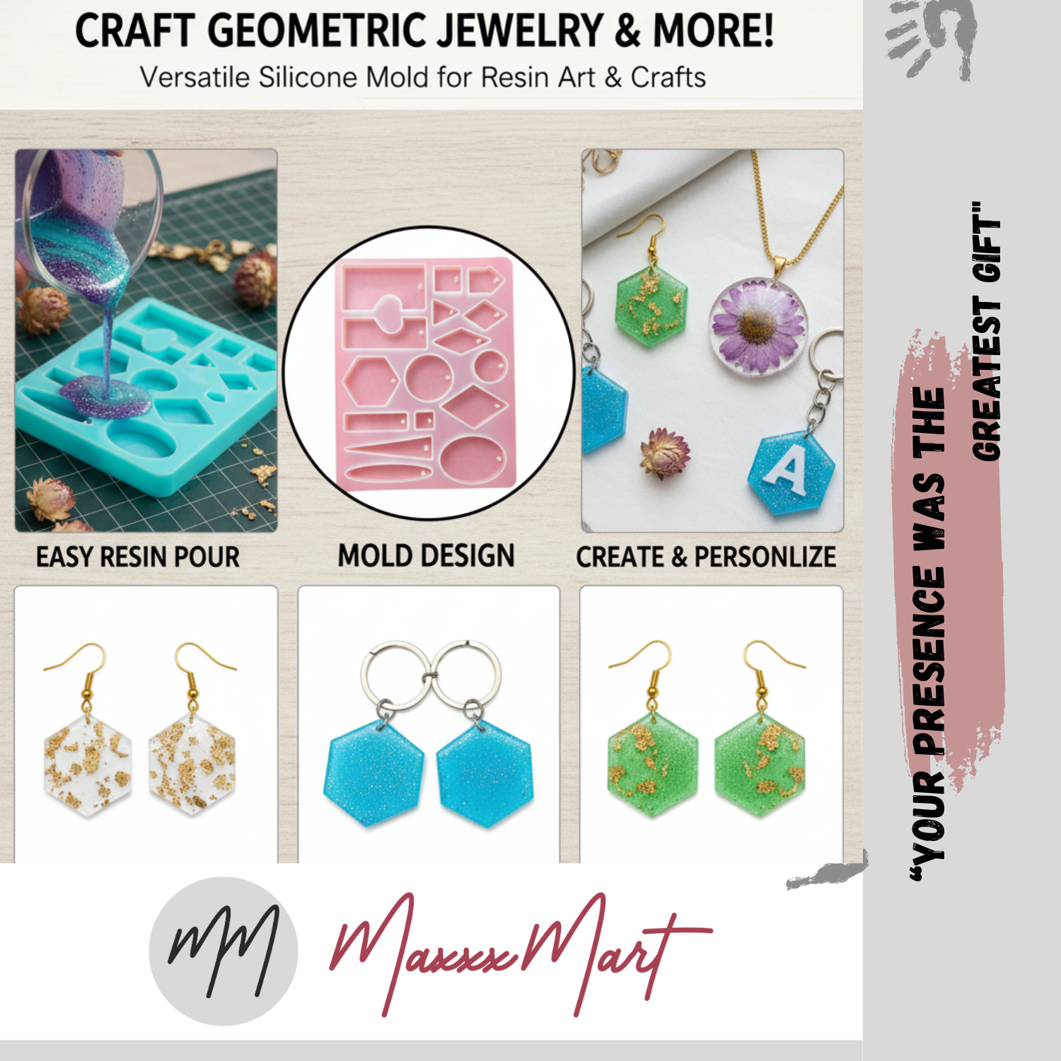 Maxxxmart - Resin Art Mould 16 in 1 For | Clear Silicone Casting Mold for DIY